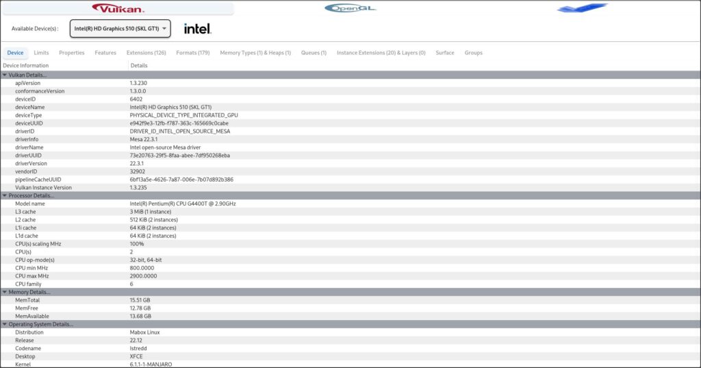 GPU-Viewer erfasst die CLI-Befehlglxinfo, vulkaninfo, clinfo und es2_info, um sie in Verbindung mit grep, CAT und AWK in einer benutzerfreundlichen GUI zu verarbeiten.