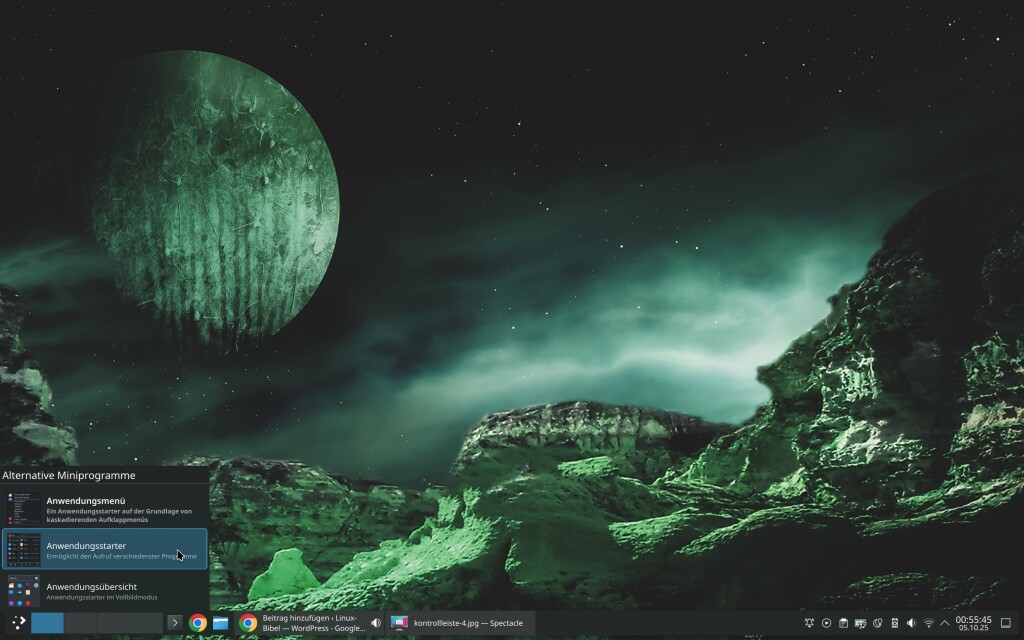 Beim Anwendungsmenü gibt es noch viele weitere, indem Sie wie vorher beschrieben nach dem Begriff „menu“ suchen. Auch solche sind nach der Installation im Wechsel-Menü zu finden.