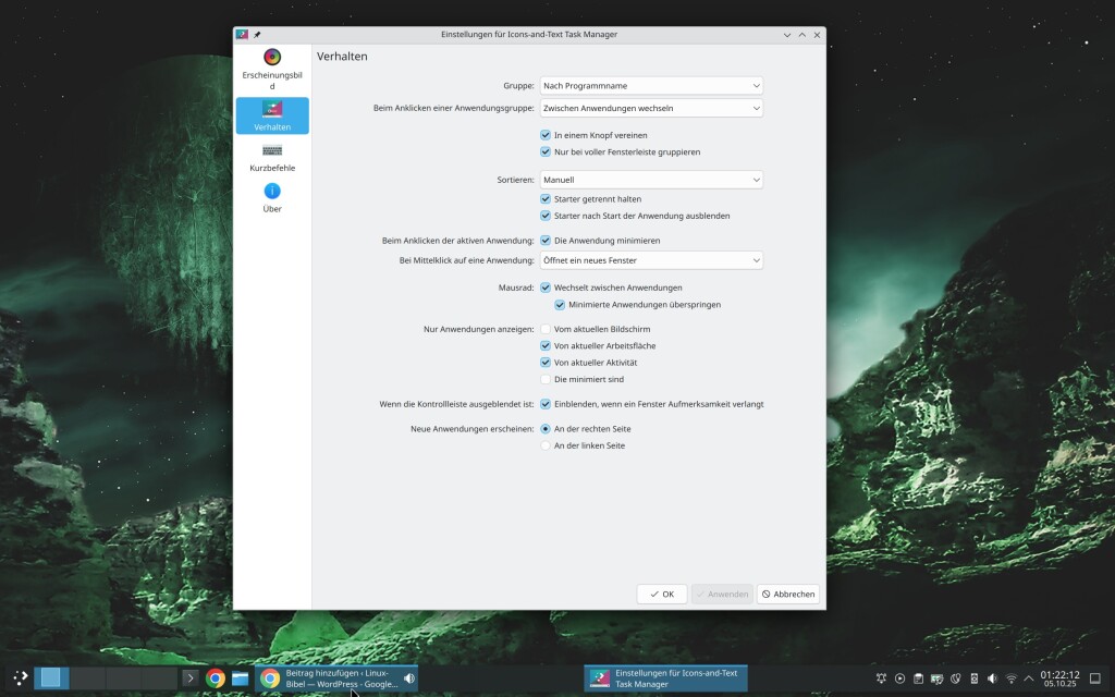 Die Fensterleiste unter KDE zeigt heute eigentlich nur noch Icons – nicht wie oben in meinen Screenshots einzelne Fenster: