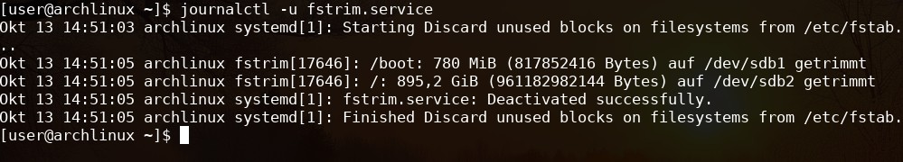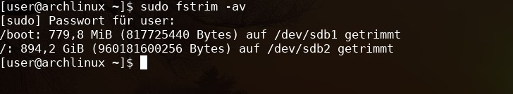Das Tool fstrim (Teil von util-linux) kann manuell ausgeführt werden: