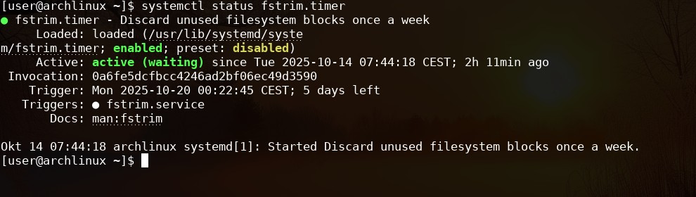 Linux bietet eine systemd-Timer-Einheit fstrim.timer, die wöchentlich einmal fstrim.service