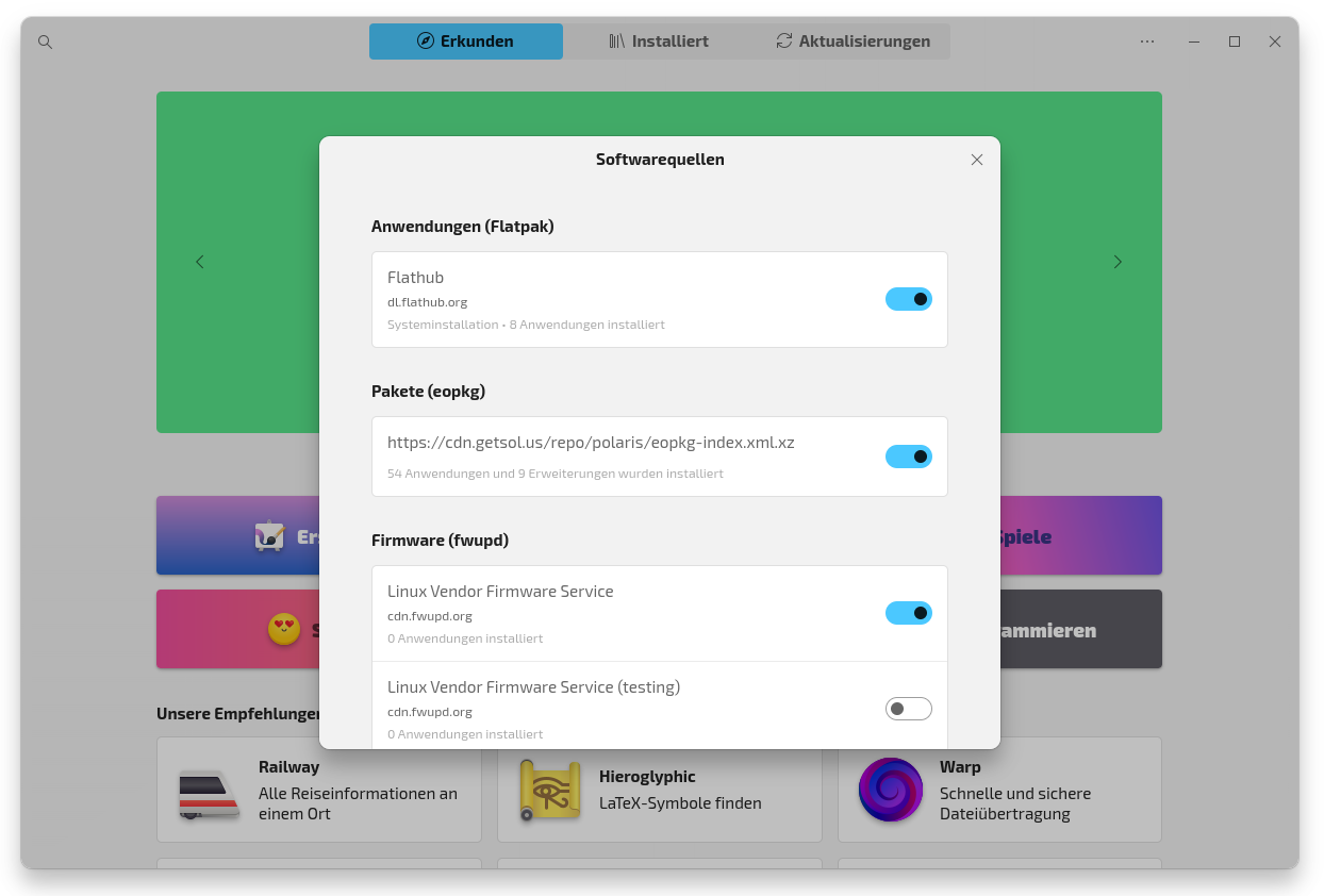 Moderne Technologie: Native Software-Center sind besser integriert, pflegen Flatpak direkt, bieten ausführlichere App-Beschreibungen und sind auf dem neuesten Stand der Technik.