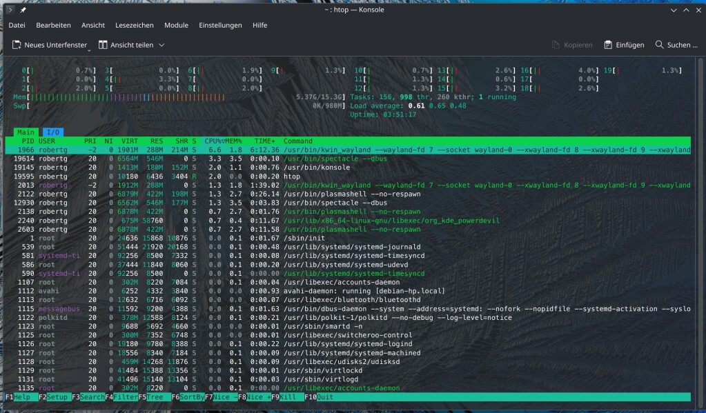 Und htop ist unter auf Debian basierenden Linux-Distributionen über die Paket-Verwaltung durch das Paket „htop“ installierbar: