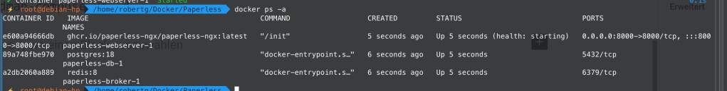 Jetzt kontrollieren Sie, ob alle Container laufen: