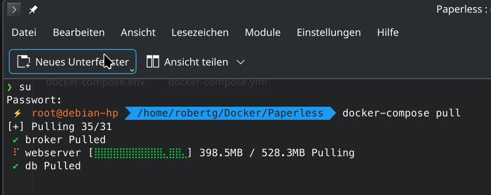 Sie speichern die Datei und öffnen ein Terminal als root im Verzeichnis mit den Dateien und laden sich erst einmal die nötigen Images herunter: