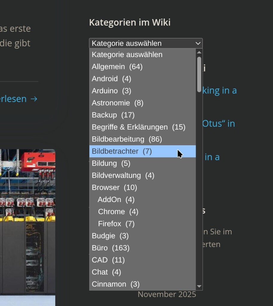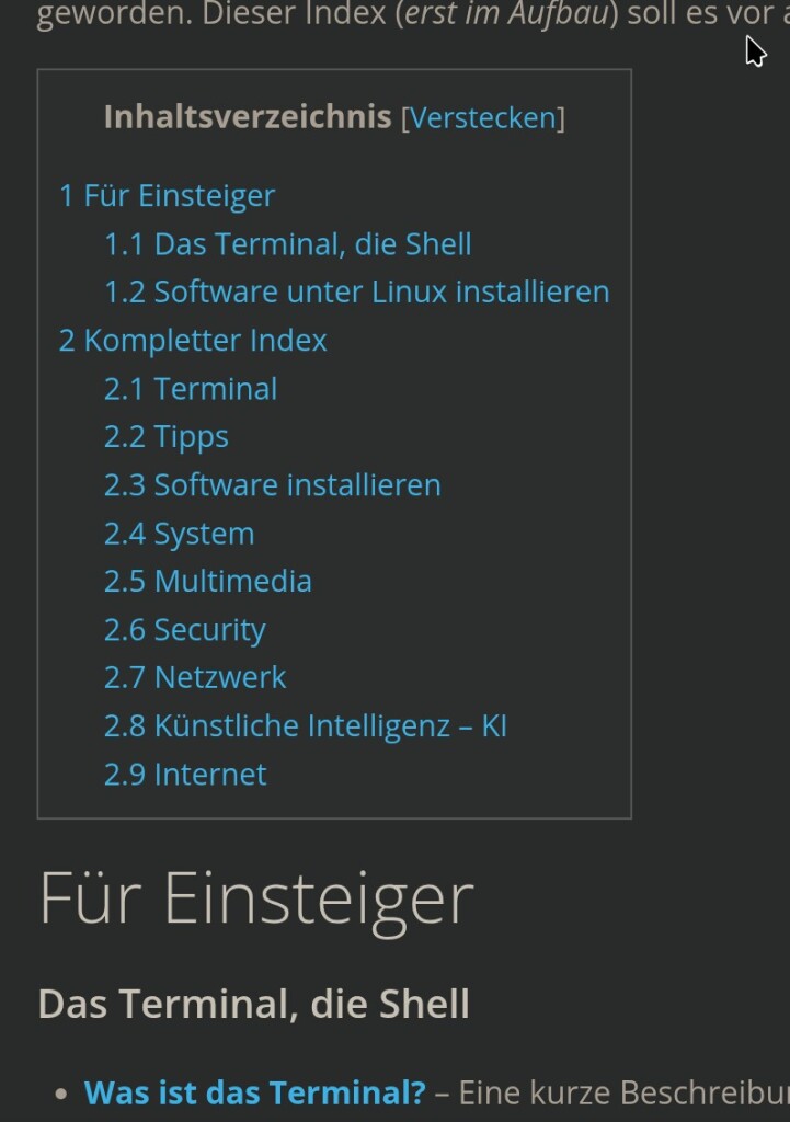 In den einzelnen Kategorien finden Sie wieder die Beiträge mit einer kurzen Beschreibungen verlinkt. Kleiner Tipp für Linux-Einsteiger – um nicht wieder jedes Mal zum Index zurückkehren zu müssen, klicken Sie mit der linken Maustaste auf den Link.
