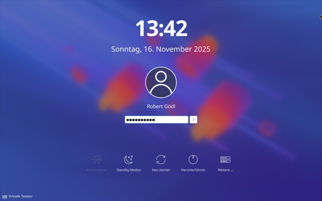 Beim Start sehen Sie das jetzt schickere Bootmenü, hier finden Sie auch ein möglicherweise weiter installiertes Windows oder andere Linux-Distributionen – zur Navigation nutzen Sie wieder die Pfeiltasten:
