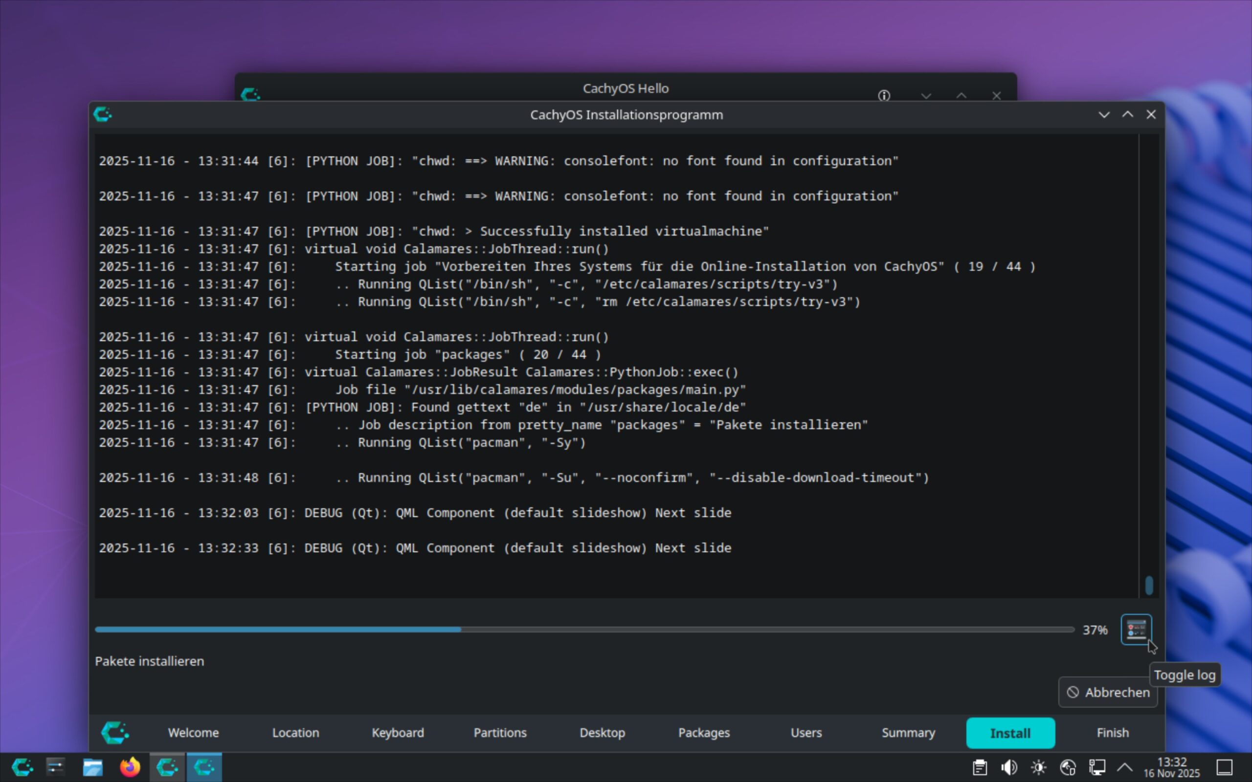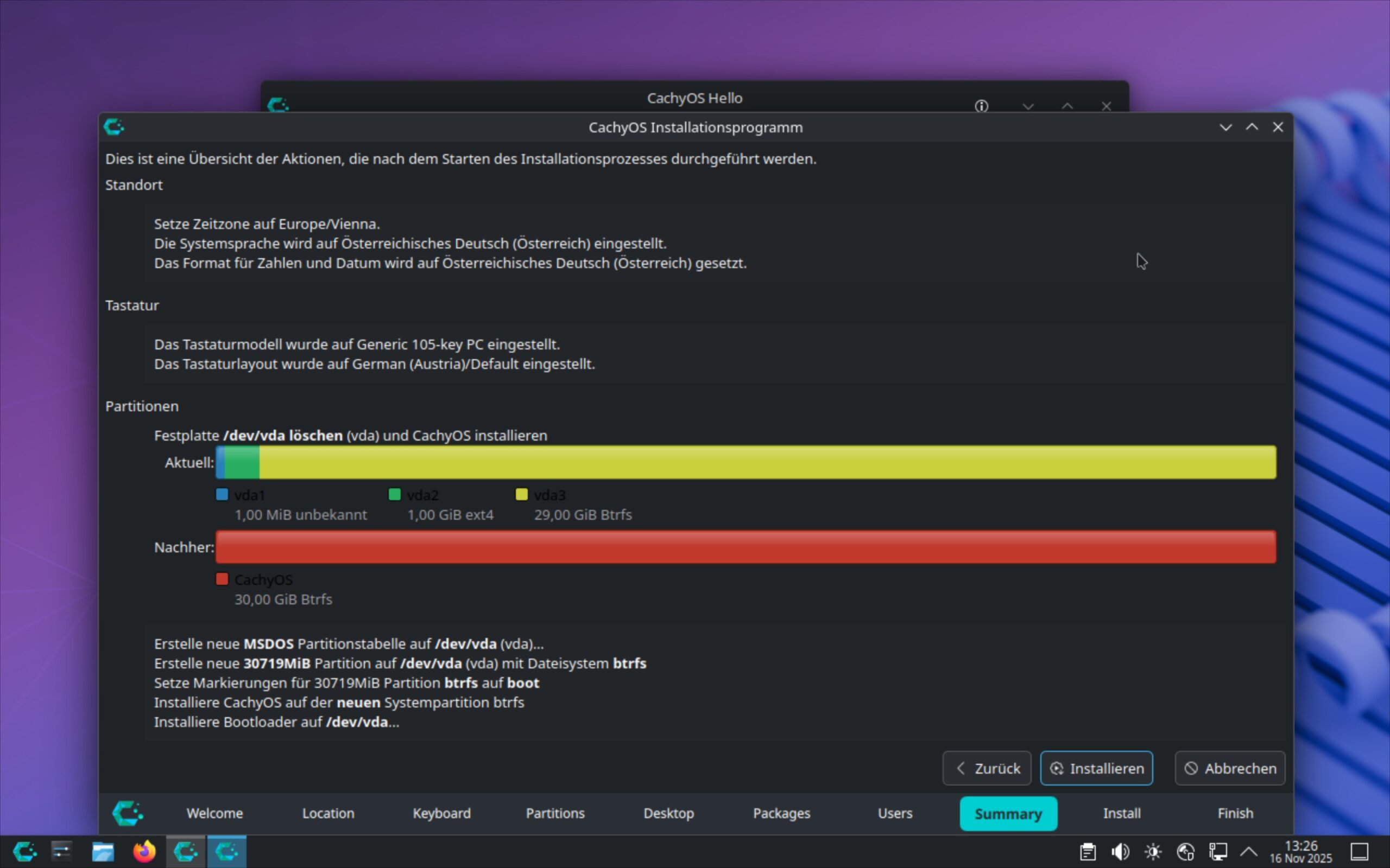 CachyOS nutzt Calamares als Installer – es läuft also alles sehr einfach ab – Sie können die Sprache anpassen, diese wird während der Installation und auch später im installierten System genutzt.