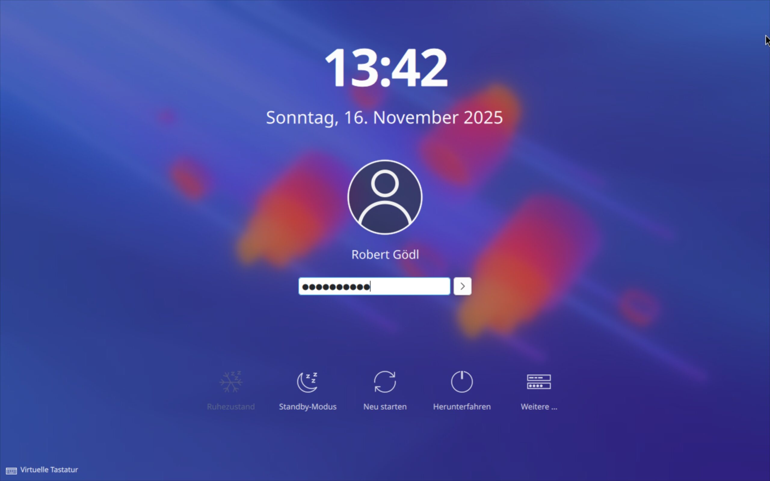 Nach ein paar Sekunden landen Sie am ausgewählten Desktop – der erste Start dauert immer ein wenig länger, da hier Ihr Konto angelegt wird und die Einstellungen vorgenommen werden.: