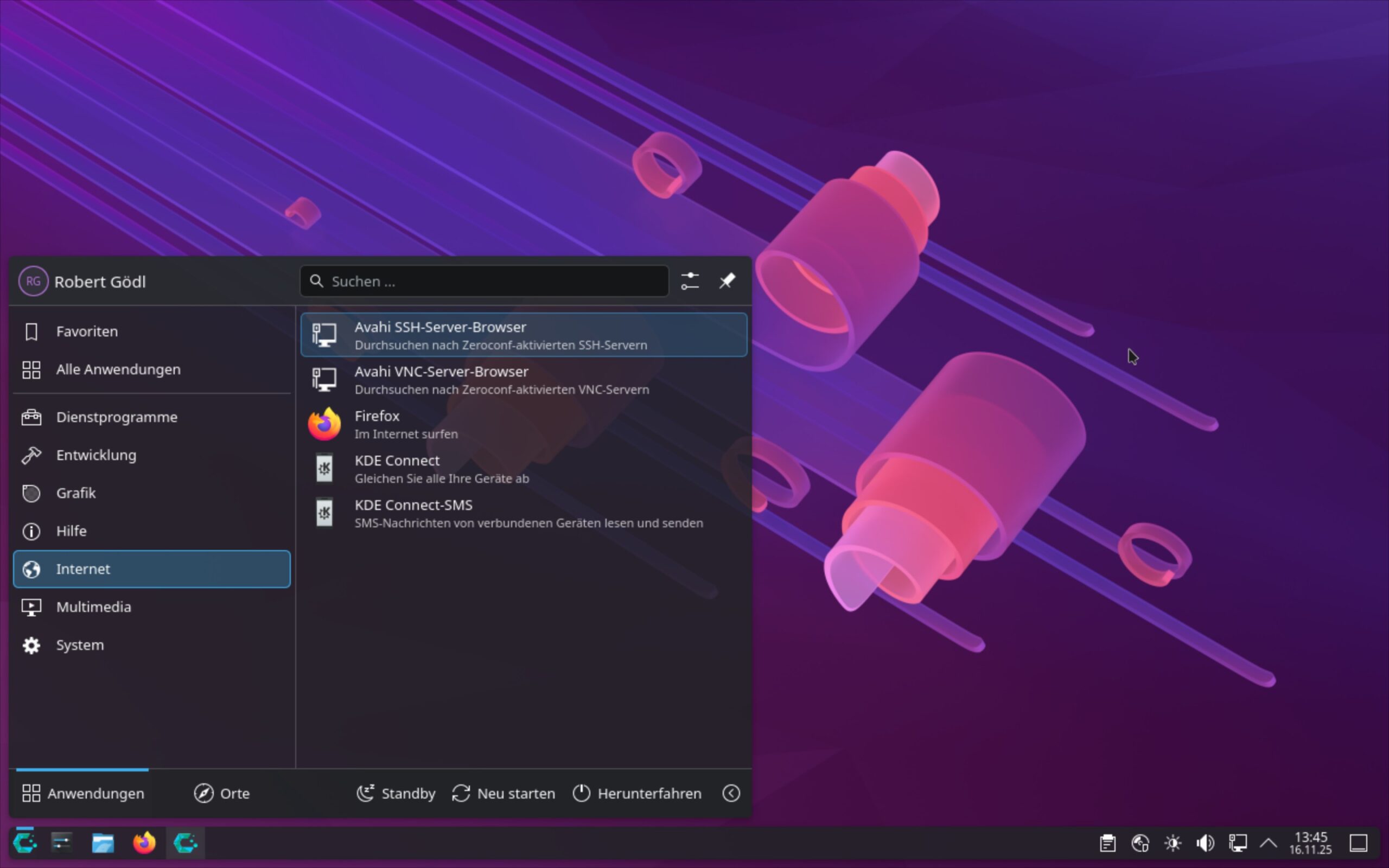Wie schon beschrieben – um die jeweilige Desktop-Umgebung kümmern wir uns hier nicht, dazu gibt es schon genug Beiträge auf der Linux Bibel. Wir sehen uns die Spezialitäten an. Viel geändert hat sich nicht, es gibt ein paar zusätzliche KDE-Anwendungen und solche, für das Arch-System.