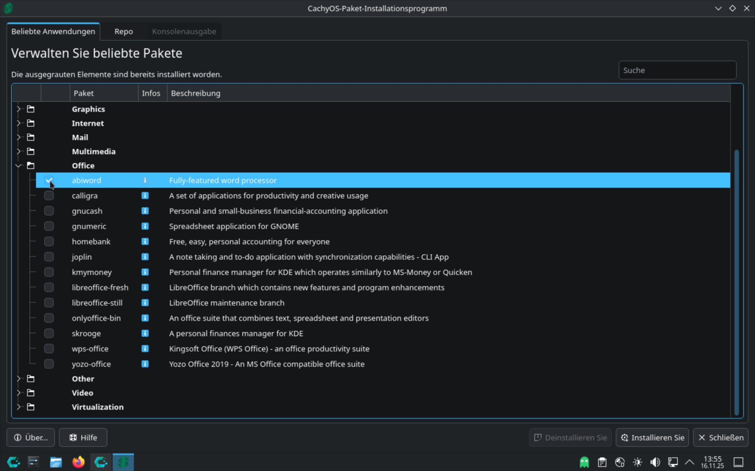 Neben Octopi gibt es unter der Kategorie System auch den Paket-Installer, dieser ist ein wenig vereinfacht.