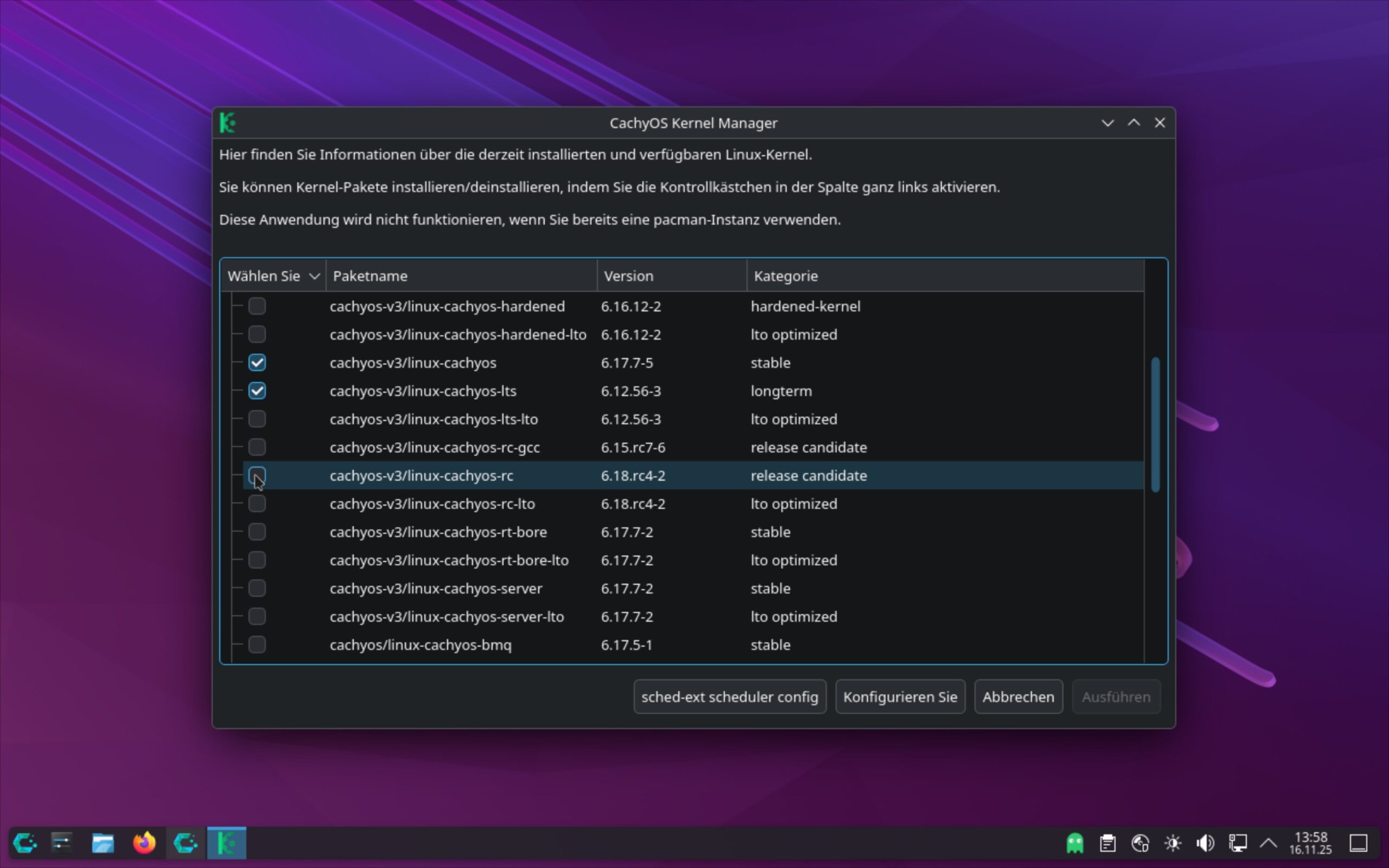 Mit dem Kernel-Manager aktualisieren Sie bestehende Kernel und installieren Sie weitere Kernel oder deinstallieren nicht mehr benötigte.