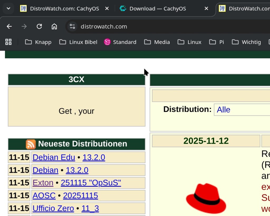 - Die neuesten Distributionen – diese finden Sie gleich ganz links oben, auch gibt es einen RSS-/ATOM-Feed dazu (für diejenigen, die von solchen Feeds nichts verstehen – einen solchen Feed im Browser zu öffnen, bringt nicht viel – hierzu braucht man die passende Software – eine Suche auf der Linux Bibel nach dem Thema „rss“ führt zum Ziel):