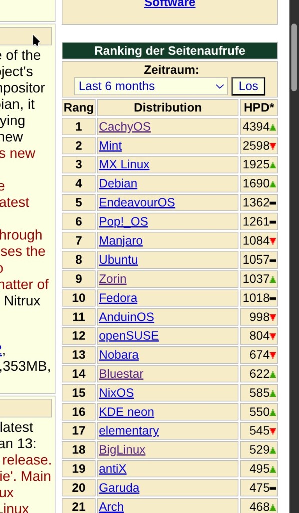 Dieses Ranking zeigt uns nur, die Klicks auf den Link der Beschreibung der Distribution auf Distrowatch, so gesehen das Interesse für die jeweilige Beschreibung.