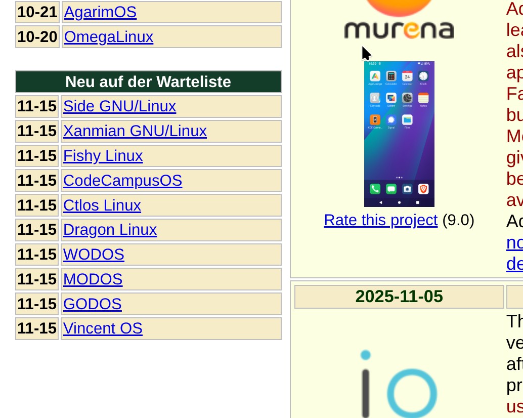 - Neu auf der Warteliste – Distributionen, für die es noch keine Beschreibung gibt, also wirklich das Neueste: