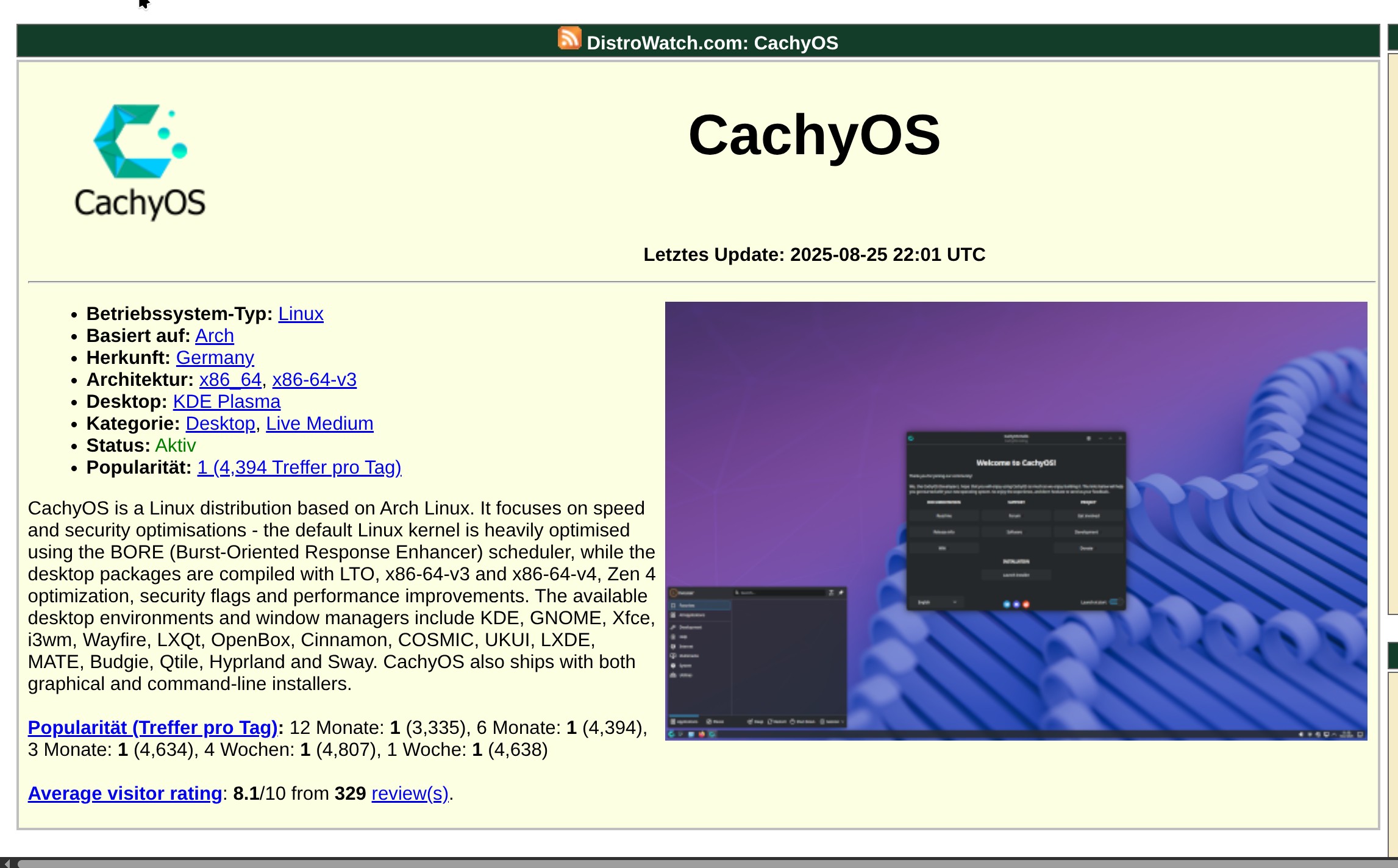 Weiter unten finden Sie noch Links zur Webseite der Distribution, zu Foren und weiteren Links, sowie die Releases, die es bisher schon von dieser Distribution gegeben hat.