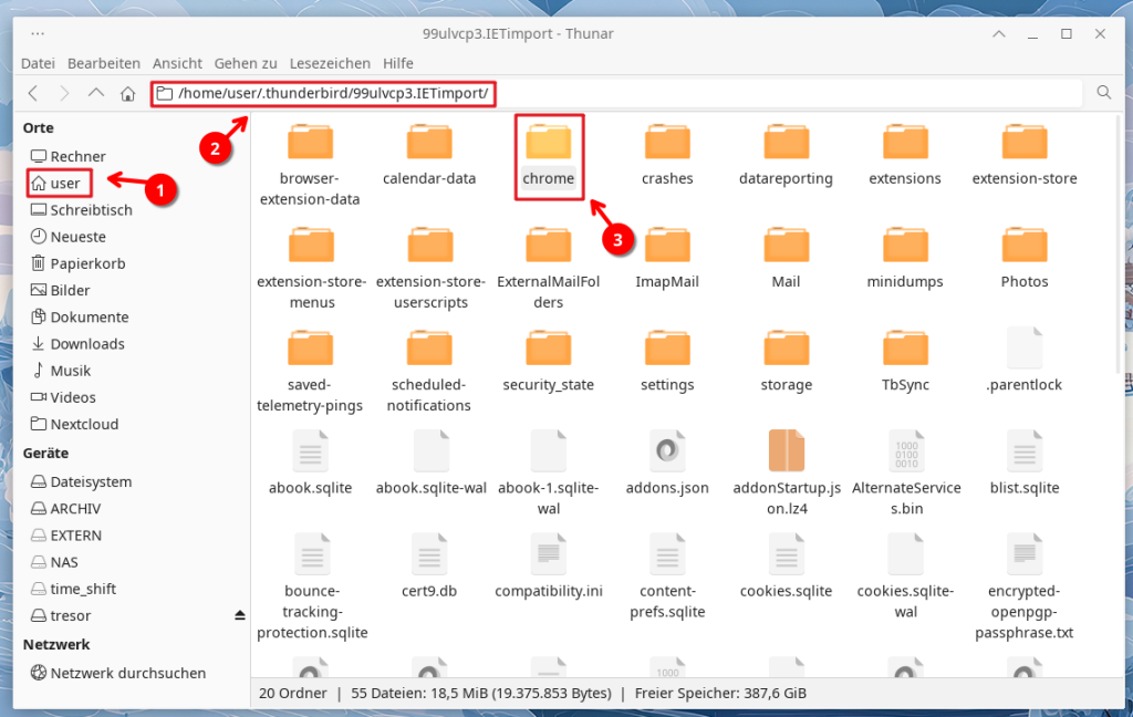 Öffnen Sie diesen und darin den Ordner xxx.IETimport (oder ähnliche Bezeichnung) – lassen Sie die beiden Ordner mit Endung xxx.default sowie xxx.default-release links liegen…
