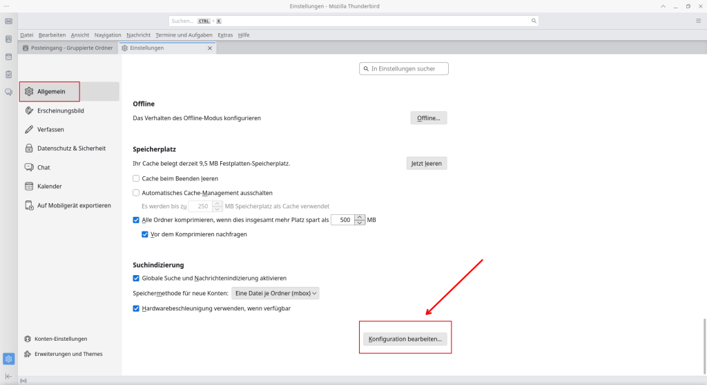 Öffnen Sie Thunderbird und navigieren Sie zu den Einstellungen > Allgemein.