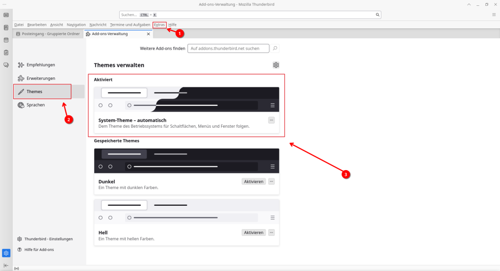 System-Theme – automatisch aktiviert sein. Beenden Sie anschließend Thunderbird.