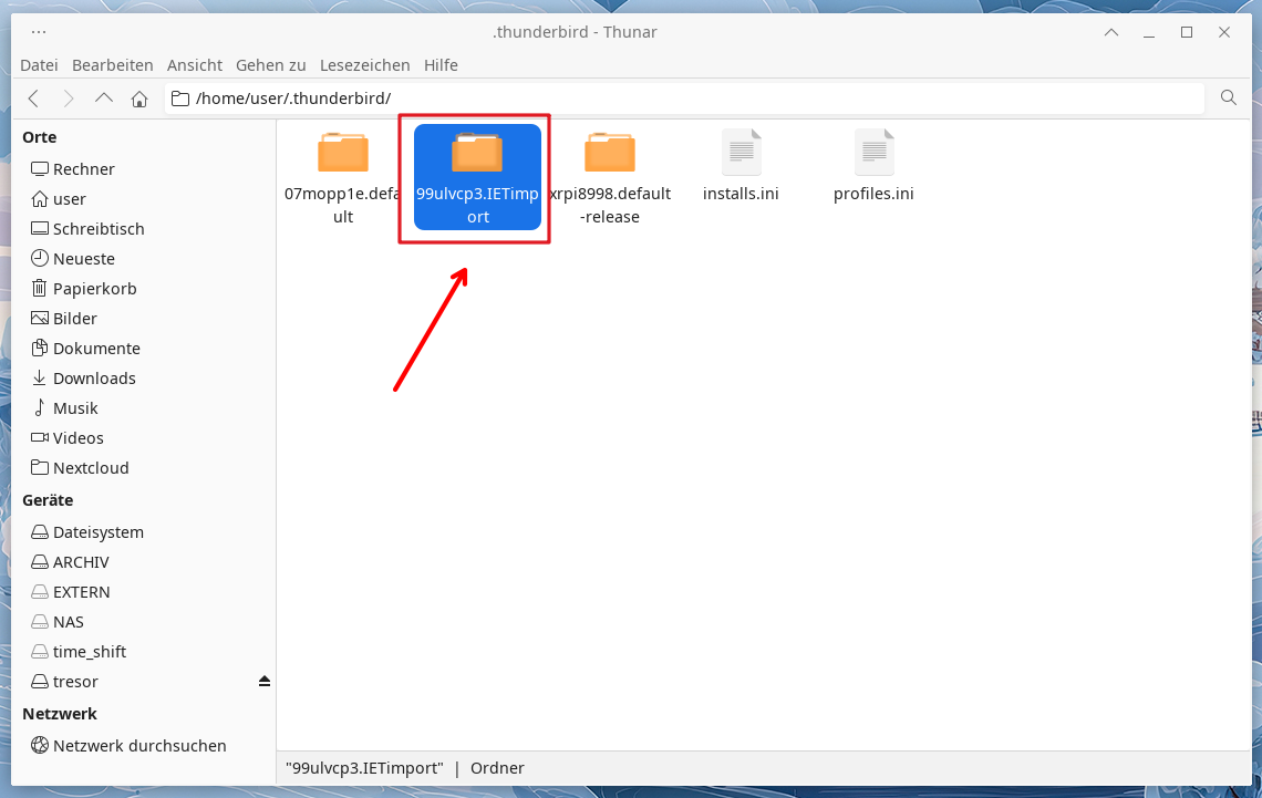 Öffnen Sie diesen und darin den Ordner xxx.IETimport (oder ähnliche Bezeichnung) – lassen Sie die beiden Ordner mit Endung xxx.default sowie xxx.default-release links liegen…