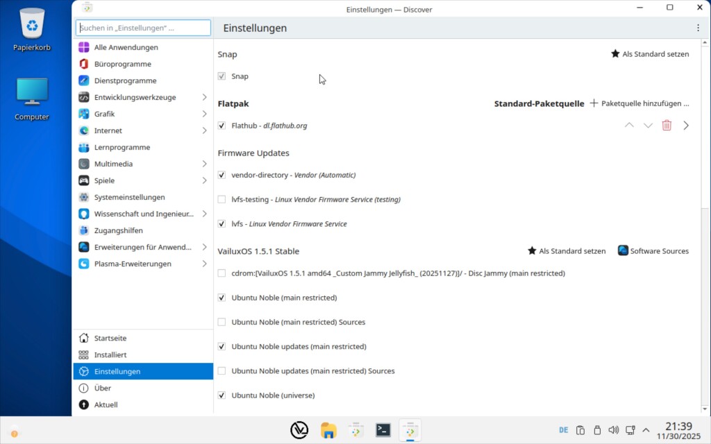 In den Einstellungen ist auch Snap von Ubuntu aktiv – wenn gewünscht, lässt sich dies hier deaktivieren: