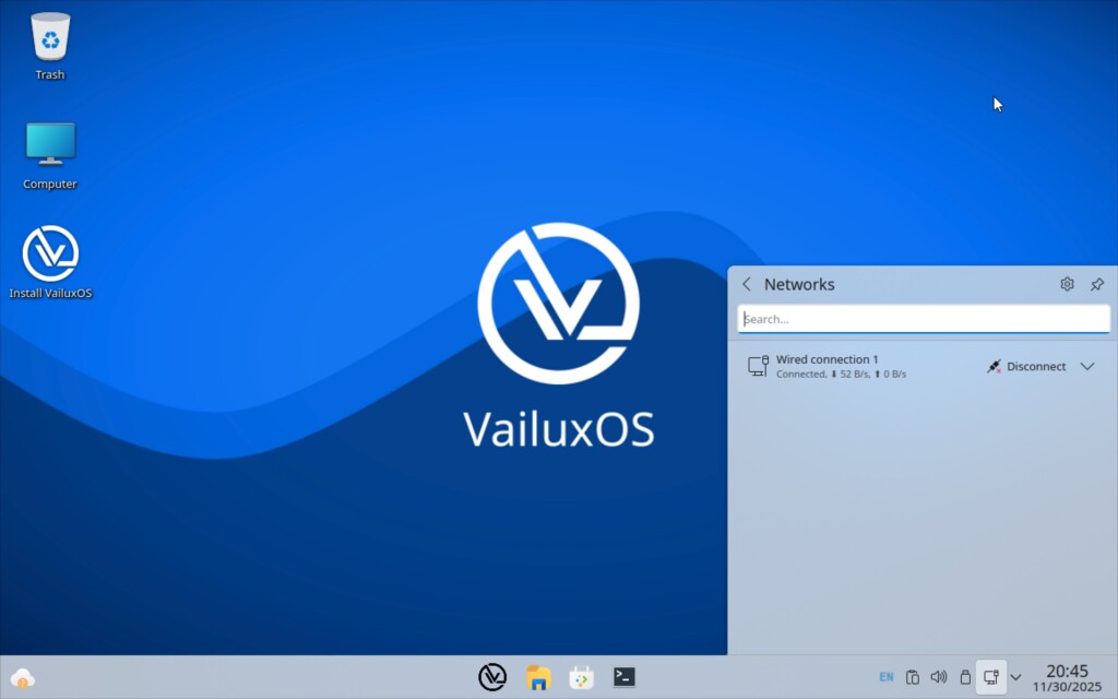 Sie finden das Image der Distribution unter VailuxOS zum Download, das heruntergeladene Image kopieren Sie etwa mit Etcher bootfähig auf einen USB-Stick und starten den Rechner davon.