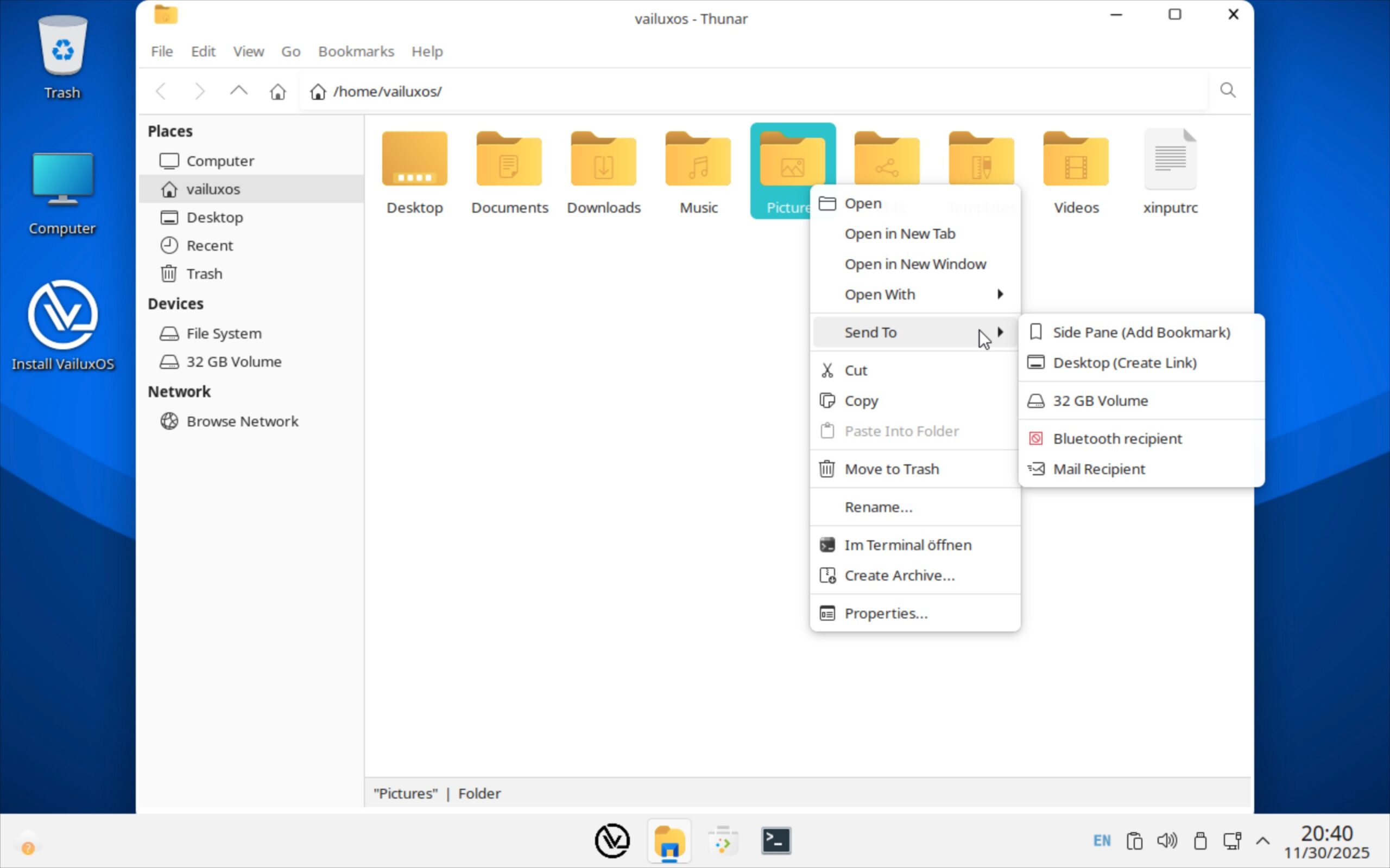 Als Dateimanager werkelt Thunar aus XFCE – also sehr schnell: