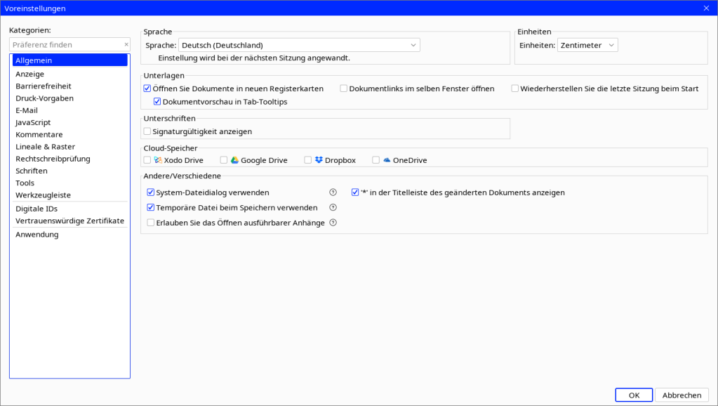 Nehmen Sie die gewünschten Einstellungen wie Einheiten, Lineale usw. vor, klicken dann auf OK und starten die Anwendung neu.
