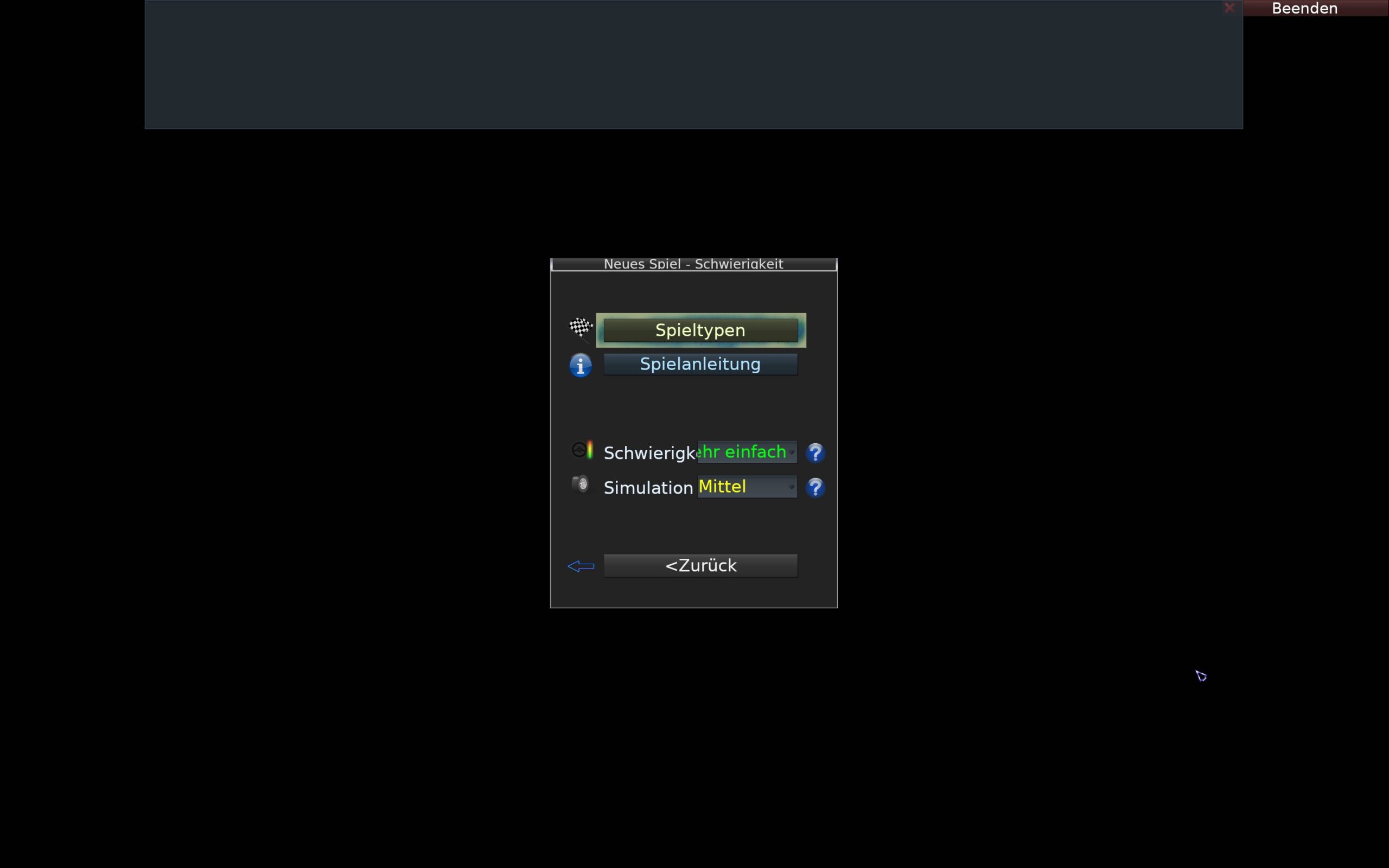 Und dann wird per „Neues Spiel“ gestartet:
