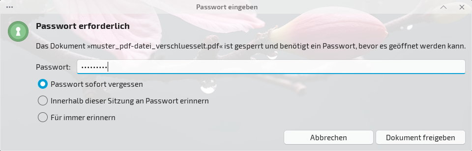 Das entschlüsselte PDF-Dokument wurde erstellt und kann nun ohne Passwortabfrage geöffnet werden…