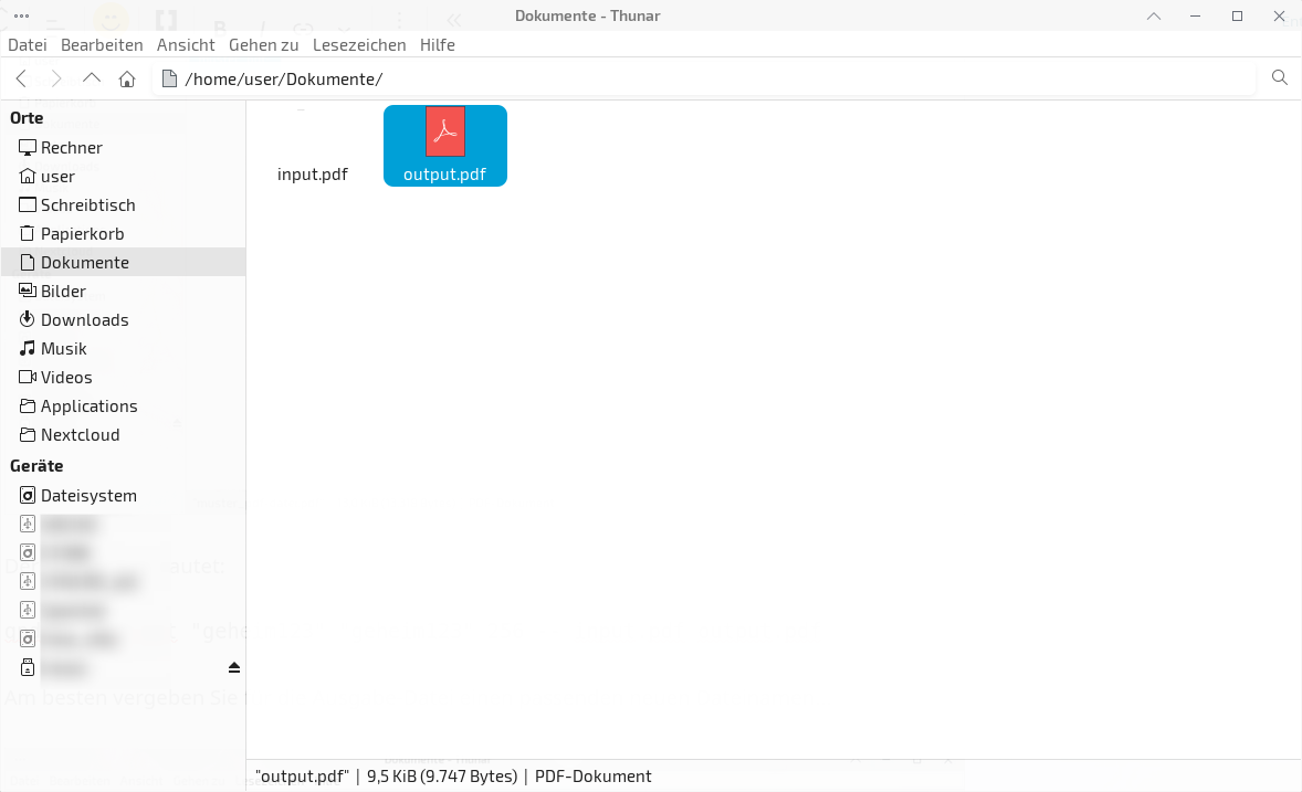 Unter Dokumente im home-Bereich befindet sich die PDF-Datei input.pdf die nachträglich verschlüsselt werden soll…