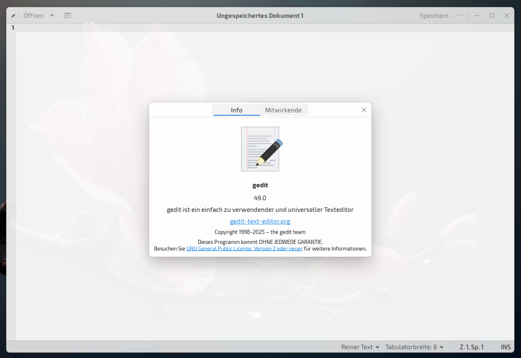 Um im Beispiel zu bleiben, achten wir auf gedit…