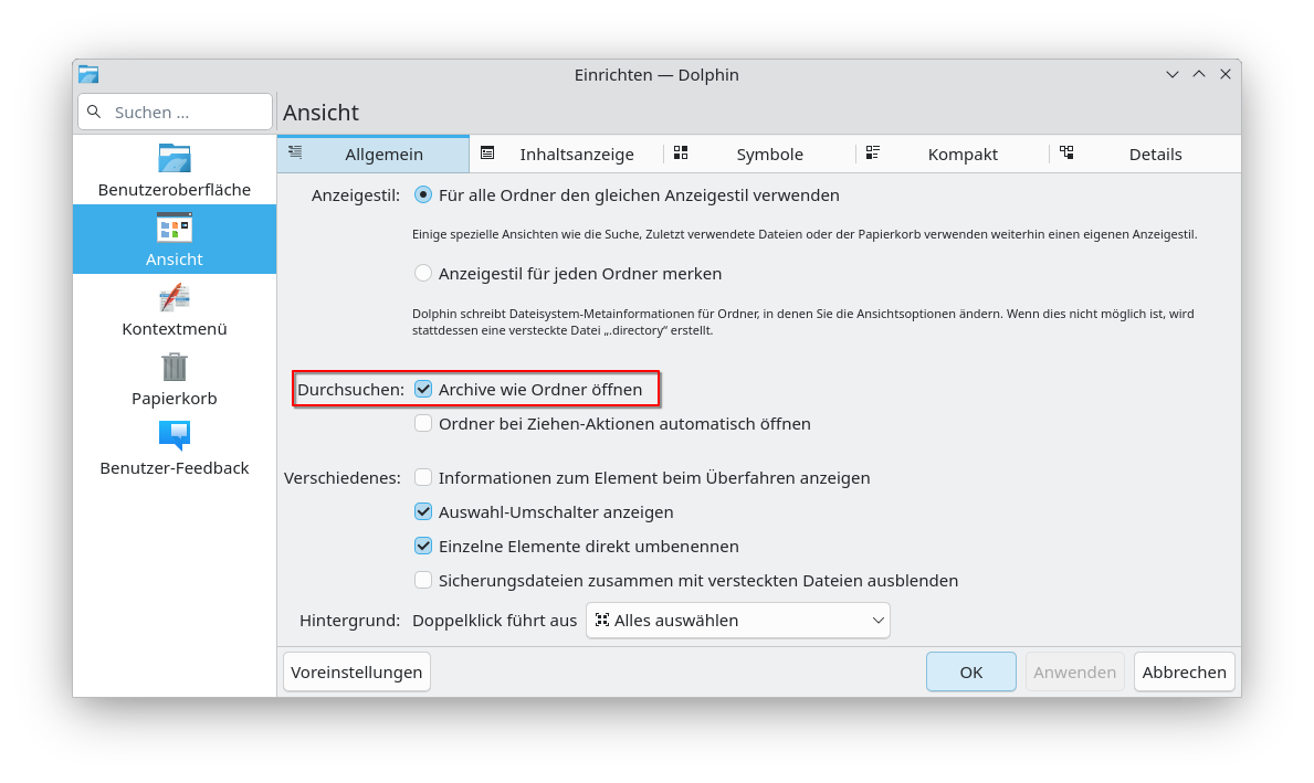 Häkchen bei Archive als Ordner öffnen setzen. Dann können ZIPs direkt wie Ordner geöffnet werden.