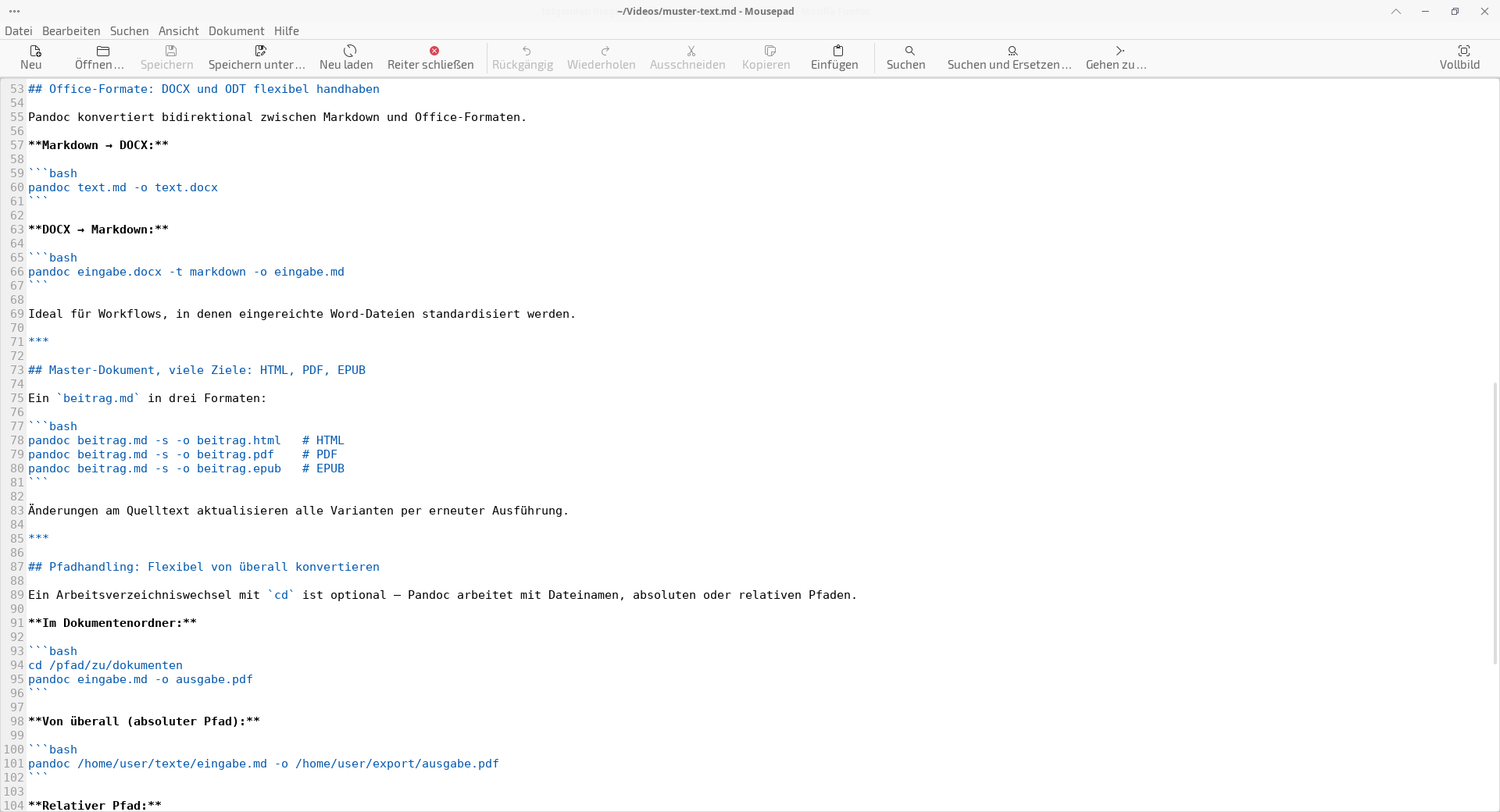 Pandoc ist den Repository von Debian, Ubuntu und darauf basierenden Distributionen verfügbar und wird mit dem Befehl: