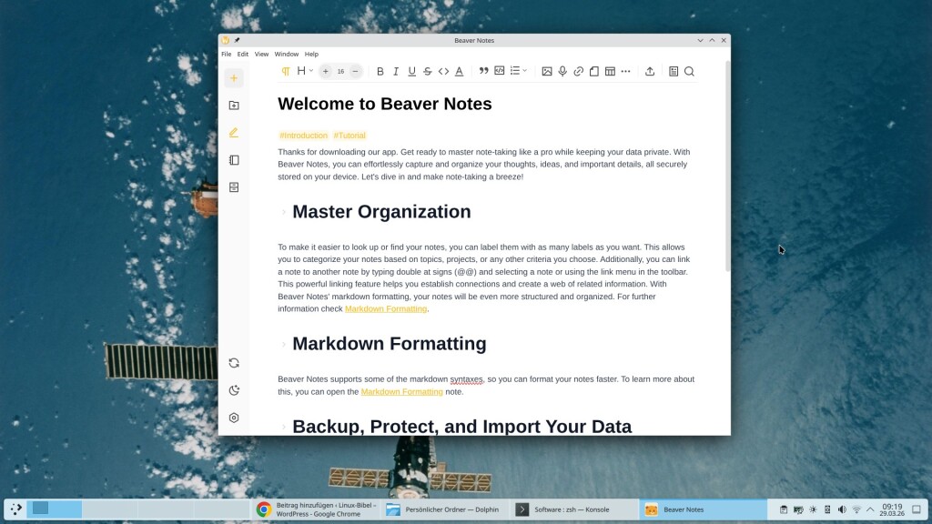 Anwendungen für Notizen gibt es auf der Linux Bibel bereits ohne Ende – habe ich glaube ich auch nicht das erste Mal geschrieben 😋, doch man kann nie genug davon bekommen. Nun, Beaver Notes ist erst einmal Datenschutz – freie Software, Sie können diese am lokalen Rechner nutzen ohne Cloud, oder auch mit der Cloud, die Sie wollen. Nutzen lässt sich die Software unter Linux, macOS und Windows.