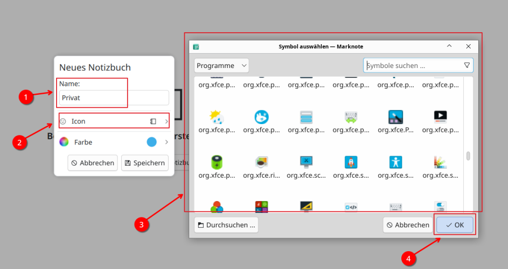 Im sich öffnenden kleinen Fenster tragen Sie einen passenden Namen ein – zum Beispiel „Privat“, „Arbeit“ oder „Ideen“. Optional kann das Notizbuch mit einem Symbol und einer Akzentfarbe personalisiert werden. Das hilft später dabei, verschiedene Themen schnell zu unterscheiden…