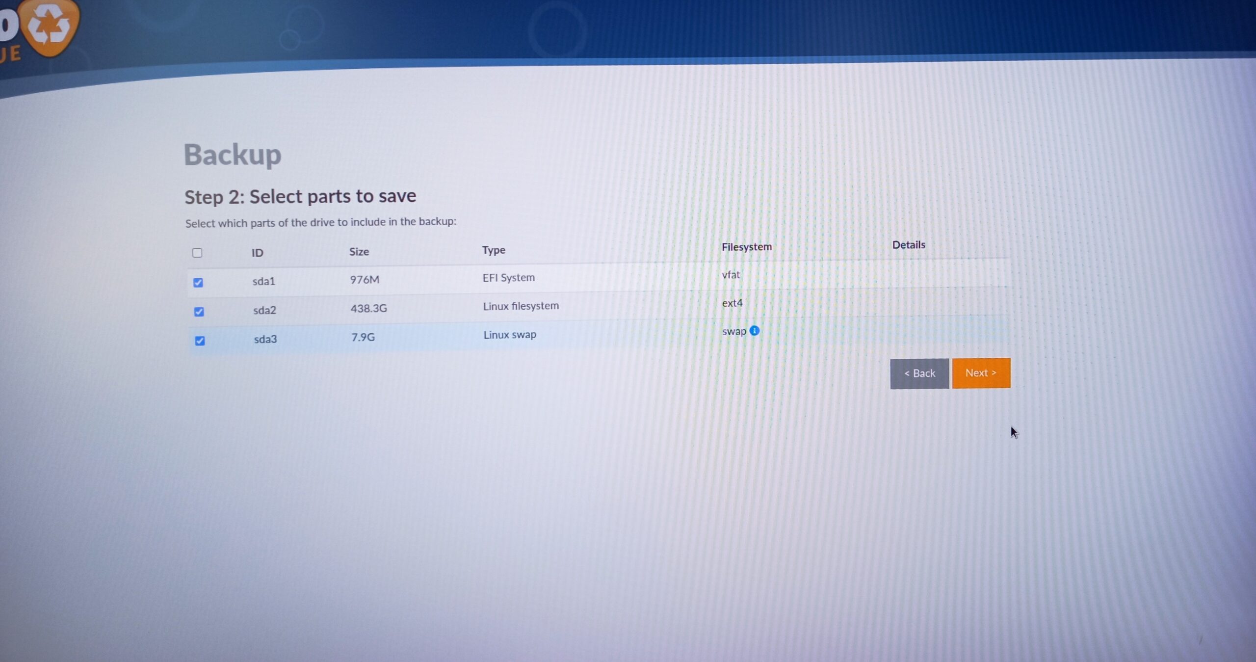 Schritt 2: Wählen Sie die zu sichernden Partitionen – i.d.R. alle Häkchen setzen und weiter mit Next