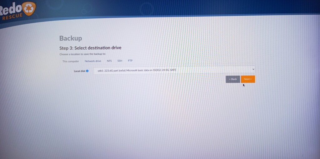 Schritt 3: Wählen Sie den Sicherungsort – i.d.R. ein externes Laufwerk / SSD und weiter mit Next