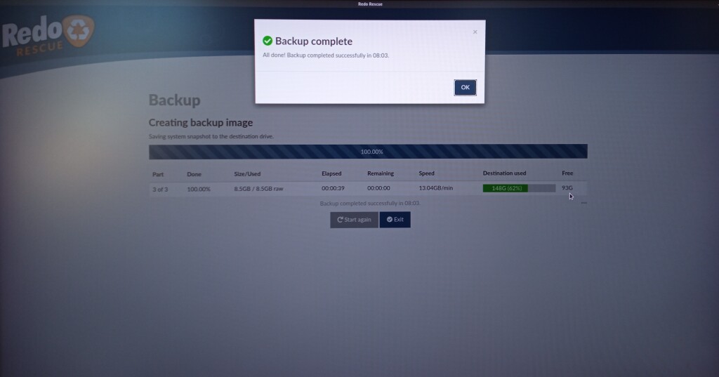 Das Backup startet nun – warten Sie den Vorgang ab…
