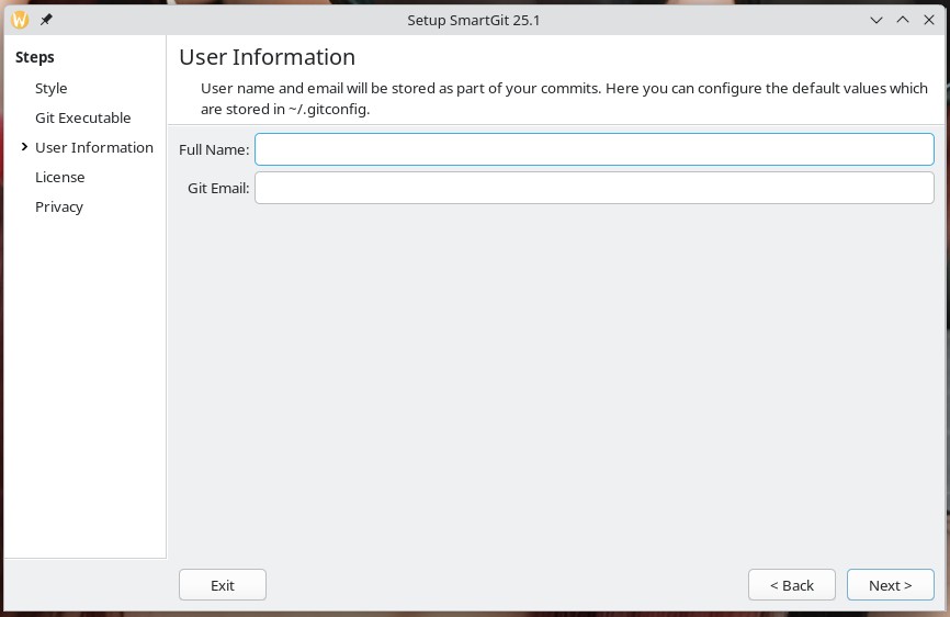 Weiter geht es mit der für Git üblichen Konfiguration.