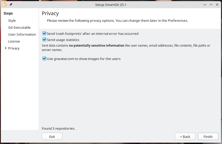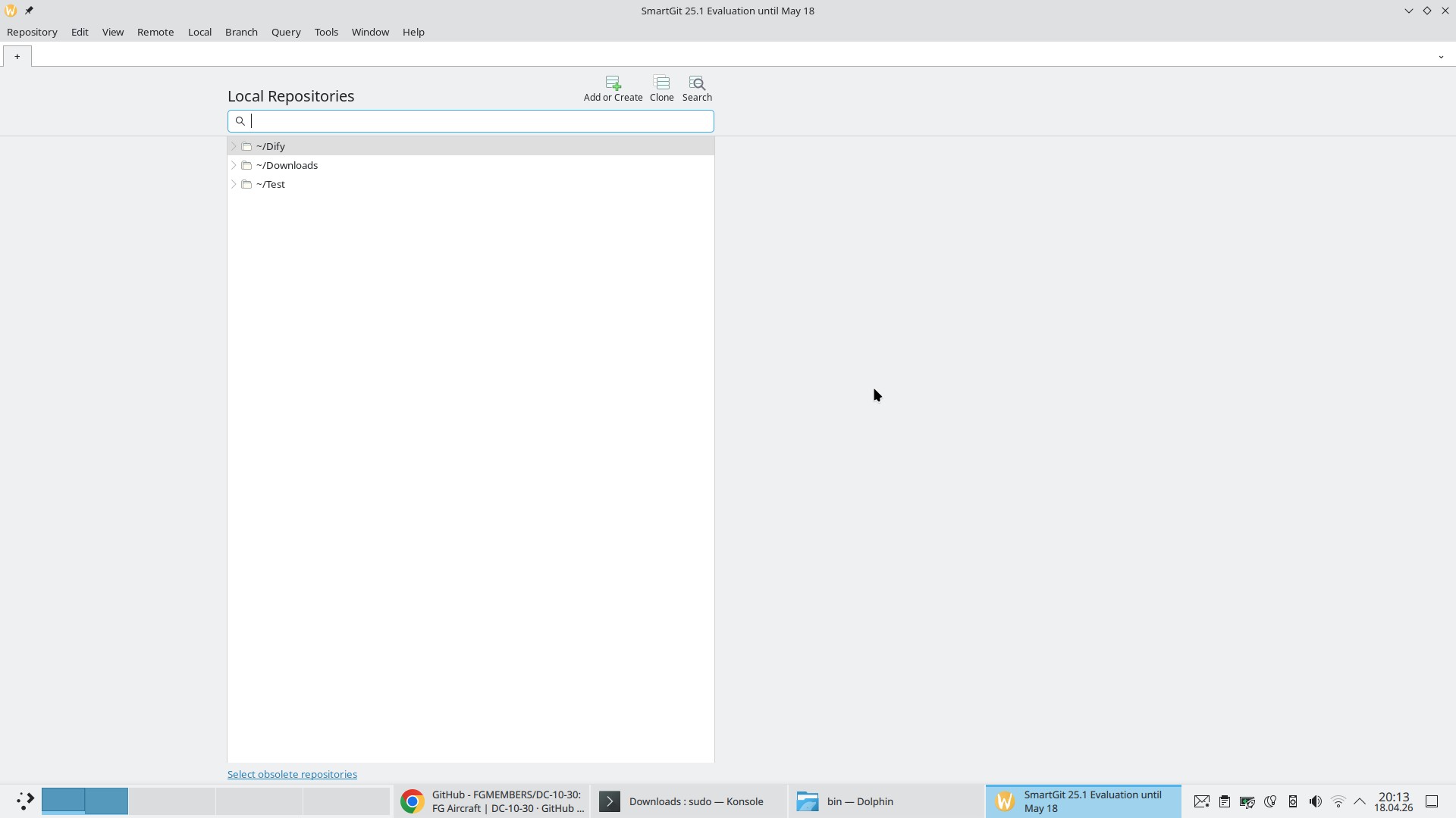 Sie öffnen das Verzeichnissmartgit“ und das darin liegende Unterverzeichnisbin„, per Klick auf die Dateismartgit.sh“ wird die Software gestartet – mit den passenden Dateien können Sie auch einen Eintrag im Anwendungsmenü erstellen – einfach auf die Datei klicken.