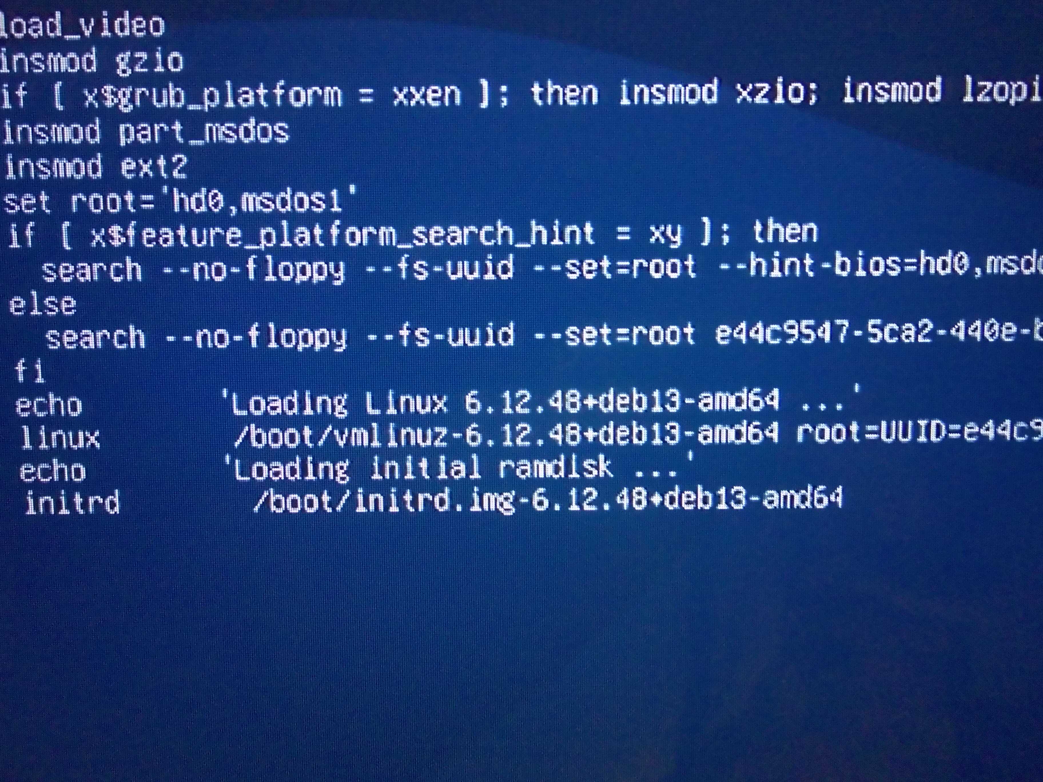 ich mache folgendes: Ich starte Debian13.1, im Grub-Auswahlfenster markiere ich oben Debian GNU/Linux , dann gebe ich "e" ein, Grub-Editor öffnet sich. Wenn du das jetzt nachmachst, gehe zur Zeile: linux /boot/vmlinux.......................anstelle von ro möchte ich rw init=/bin/bash eingeben . Der Rest nach "quiet splash" wird gelöscht. Und nun bin ich an der Stelle des Problems: Wie kann man bei rw init=/bin/bash das Zeichen "=" eingeben?