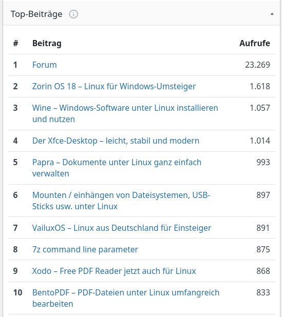 Seiten-Aufrufe im Dezember