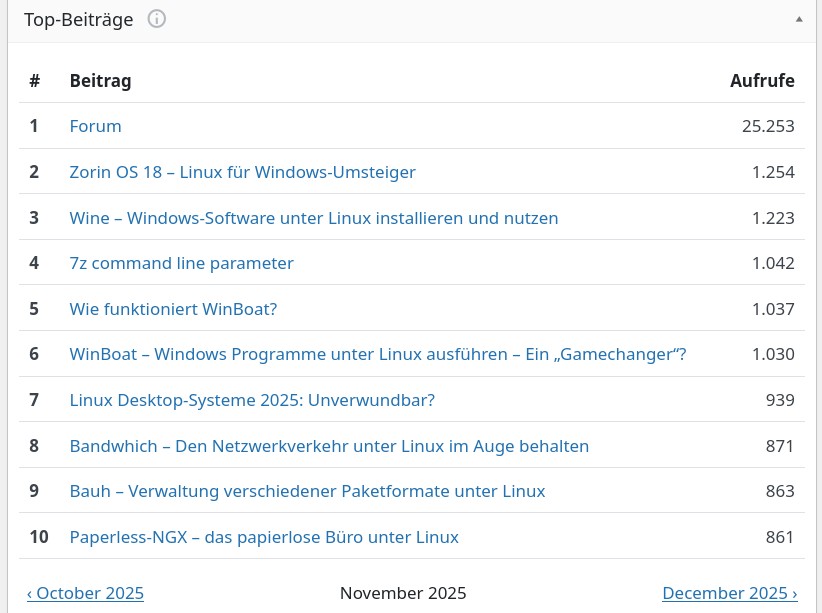 Zitat von LinuxBiber am 3. Dezember 2025, 23:29 UhrDie Entwicklung im WIKI im November 2025